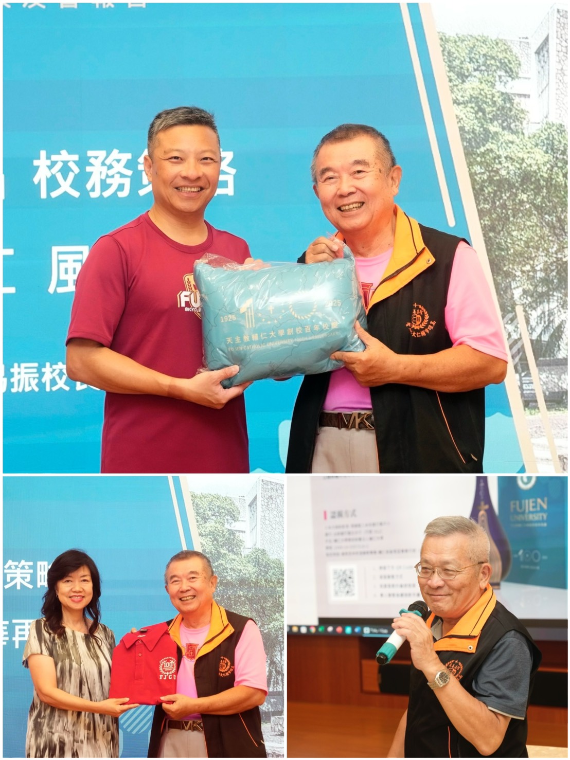 經過一天的騎行,藍校長依然精神奕奕,向高雄校友們介紹上任後輔大在教學、研究與服務上的成果,並分享今年輔大百年校慶的各項活動,現場掌聲熱烈。