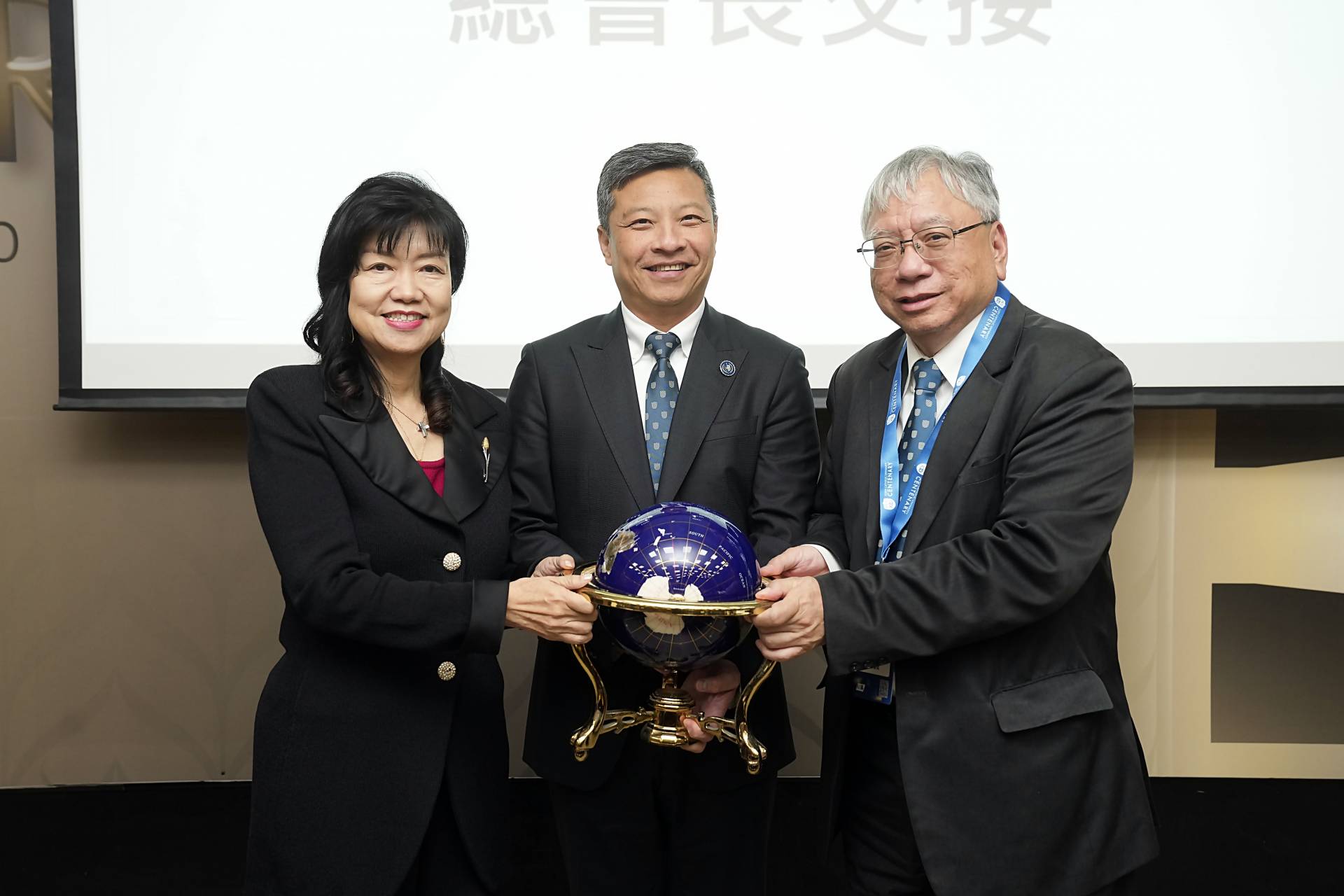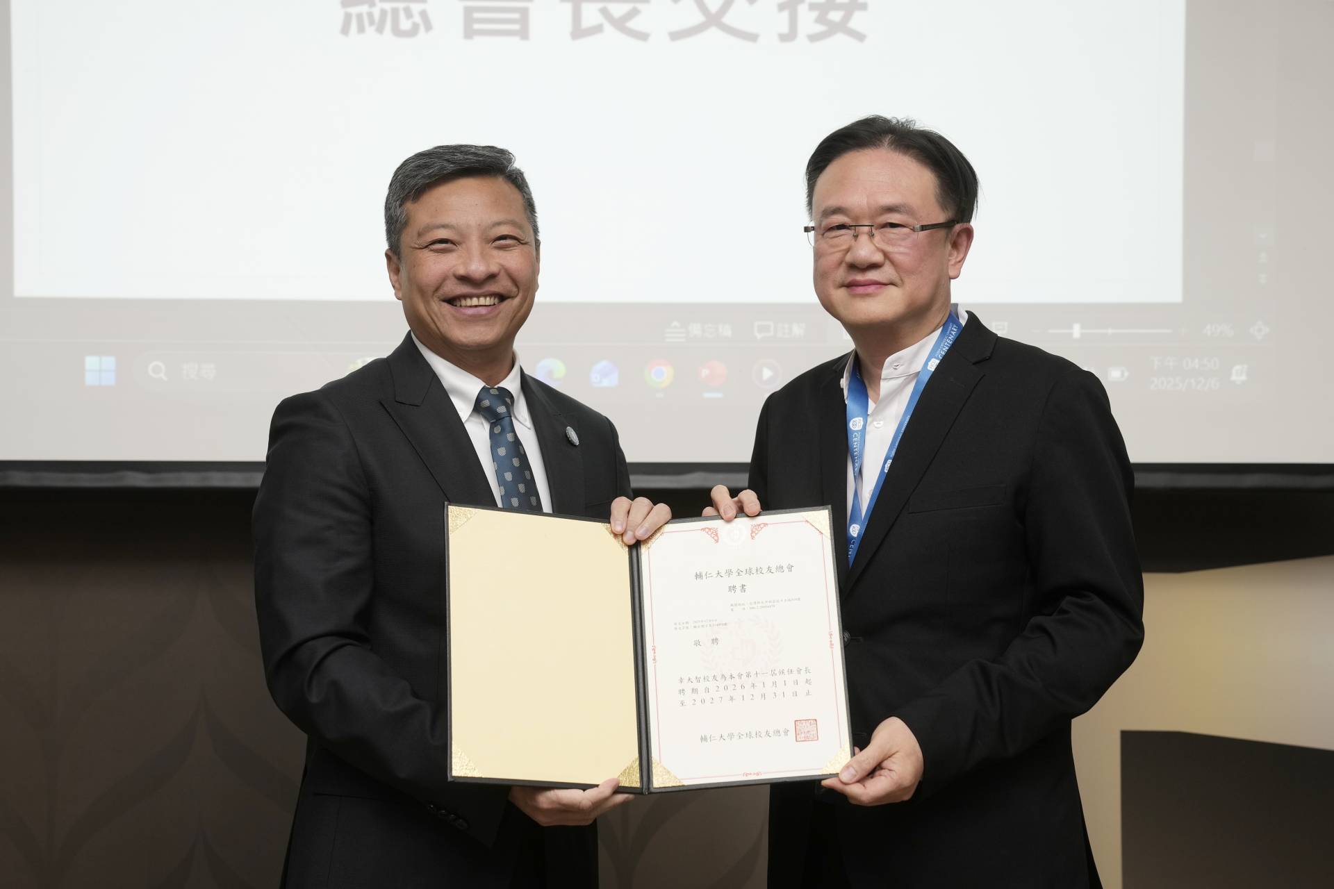 ▲由幸大智校友(右)接任全球校友總會候任會長