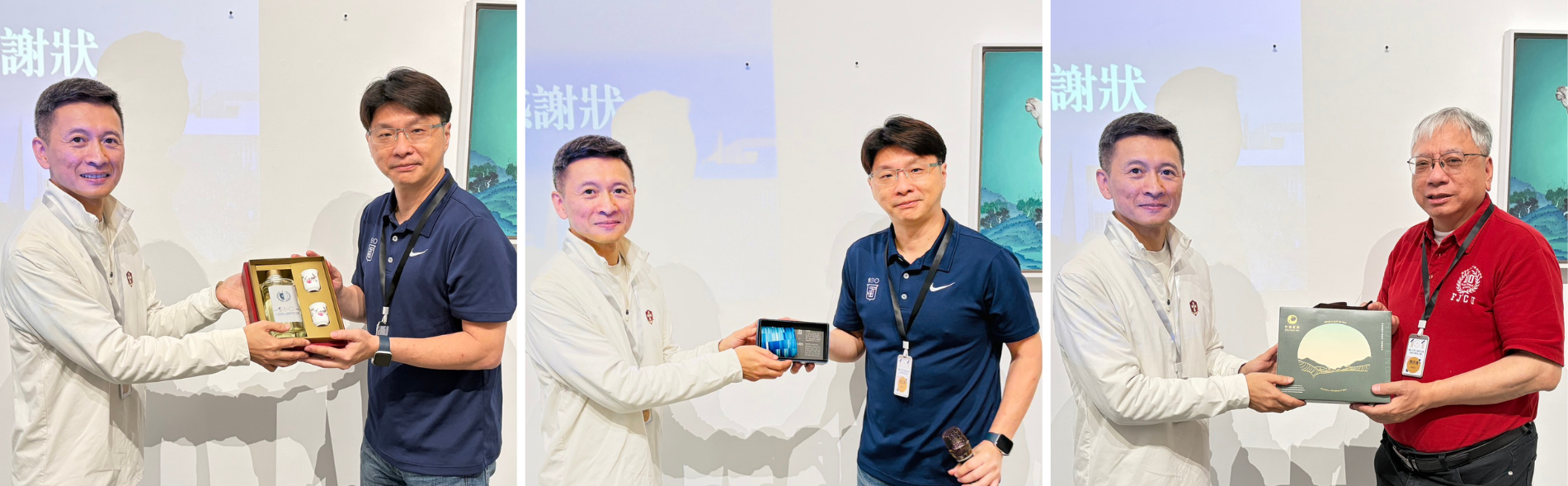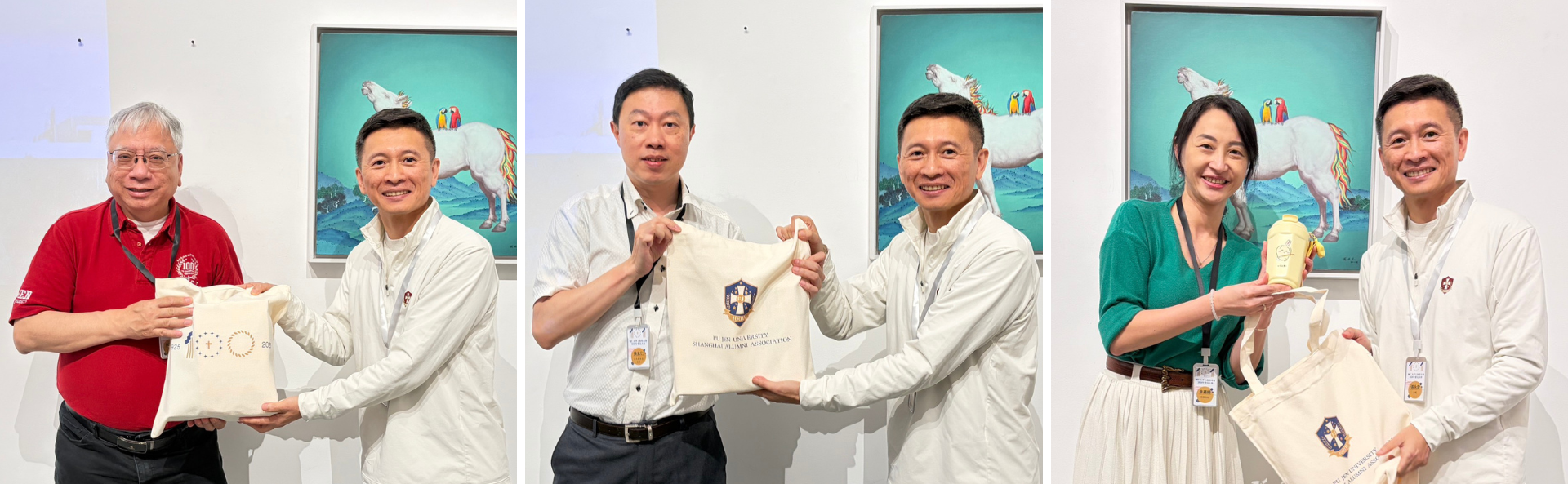 ▲上海校友會張永宏會長回贈全球校友總會長陳沛廣及輔大師長。